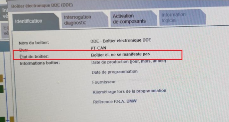 La première chose à faire lorsqu'un module ne répond pas au diag, c'est de vérifier son alim et masse. Charge batterie OK ? Diag au k dcan ? Comment est arrivée la panne ? Lance un test complet du véhicule et effectue le plan de contrôle d'ista. Bizarre sur ce screen le DDE ne donne aucun état |